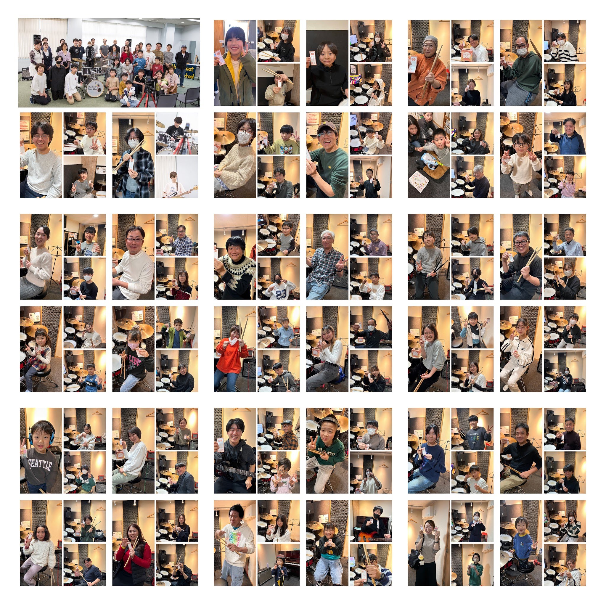 たまたま通りがかりの野外イベントで見かけたドラムセットをたたかせてもらって、そこから体験レッスンを娘と2人で受けに行くことになりました。 体験レッスンでは、初めて叩くドラムの音の大きさにびっくりしたのと、先生の格好良さに感動!その場で親子で申し込みました。 そこから今まで楽器とは無縁だった人生が一転。 今では、毎日、ドラムやギターが鳴り響く家になり、人生に彩りが出ました。 やらない後悔とやった後悔があるなら、やらない後悔の方がぜったいにもったいないと思います。 もし迷っておられるなら、ぜひ素晴らしいニュービートの世界に一度は勇気を持って飛び込んで欲しいです。