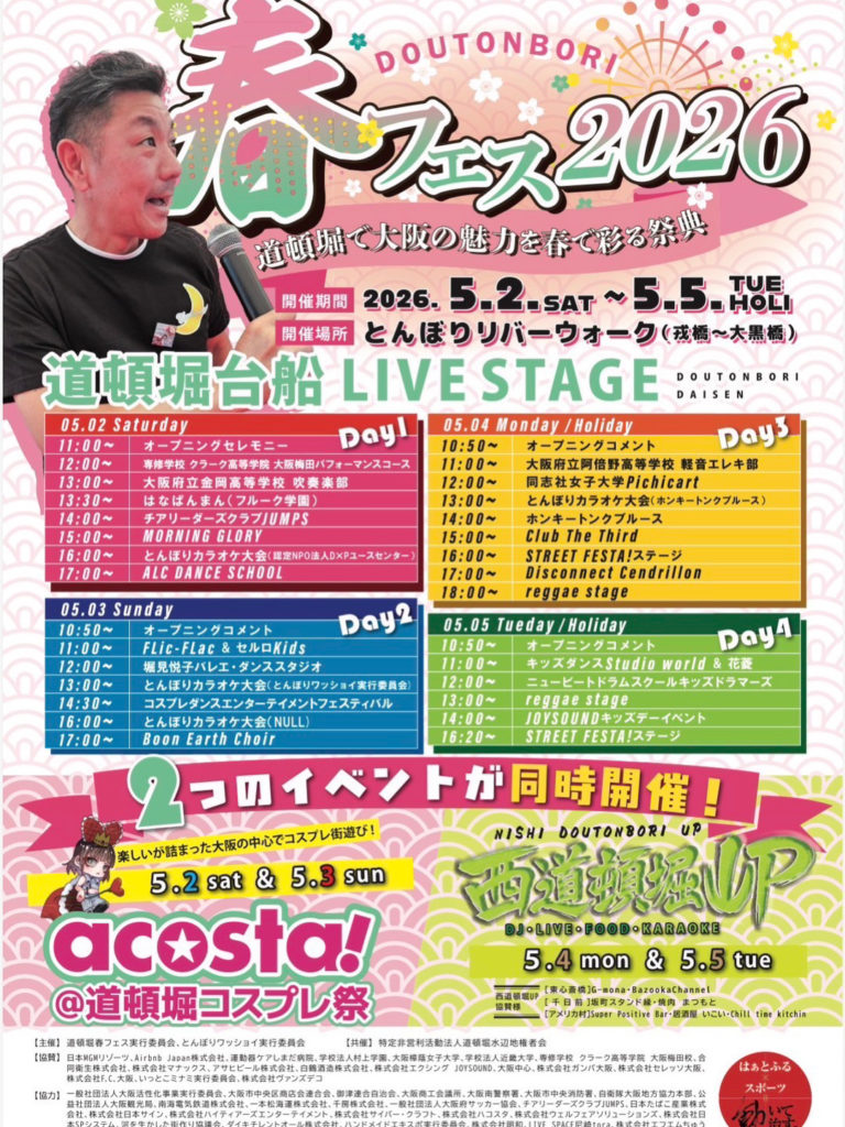 【イベント情報】道頓堀春フェス2026 に生徒さんが出場します! 2026 4/10 info お知らせ 2026年4月10日 今年も出演枠をいただけましたので小中学生のミュージシャンで参加します! 5/5㈷ 12:00~ 「ニュービートドラムスクールキッズドラマーズ」 どなたでも観覧できます☺ info お知らせ よかったらシェアしてね! URLをコピーしました! URLをコピーしました! コメント コメントする コメントをキャンセルコメント ※ 名前 ※ メール ※ サイト 次回のコメントで使用するためブラウザーに自分の名前、メールアドレス、サイトを保存する。